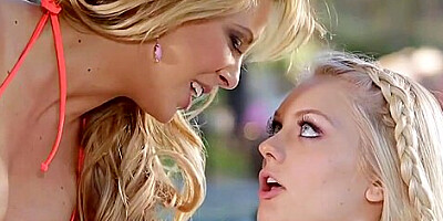 8:00 Pure blonde lesbians Alli Rae and Lexi Belle fuck poolside